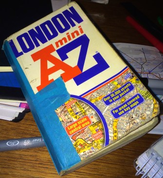 The London A-Z is one of my favourite books. When I still lived in the city that King Lud built, my battered copy guided me everywhere within Zones 1 and 2. And when online mapping took over that job, I still took it along. Its batteries never wore out, and it never required an internet connection. And no online map is as beautiful, or feels as canonical, as the ones between its covers.
