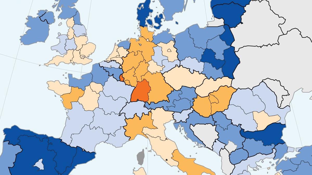 The worst-performing countries were Luxembourg (just below 28 percent), Finland (30.5 percent), Hungary (32.6 percent) and Germany (33.3 percent). But Germany contains both the state of Mecklenburg-Vorpommern (45.6 percent), well above the EU27 average; and Baden-Württemberg (29.1 percent), the worst performing NUTS1 region in Europe outside Luxembourg.