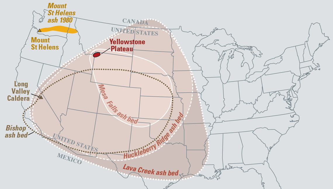 Yet by Yellowstone standards, it was tiny: Mount St Helens only ejected 0.25 km3 (0.06 cubic miles) of material, most of the ash settling in a relatively narrow band across Washington State and Idaho. By comparison, the Lava Creek eruption left a large swathe of North America in up to two meters of debris.