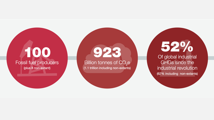 Since the industrial revolution, the 100 companies and eight now-defunct entities in the database have been responsible for 1.1 trillion tonnes and 62% of GHGs in the atmosphere.