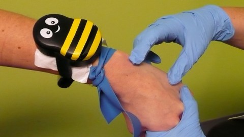 The type of pain relief provided by Buzzy follows the gate theory principle, which states that nerves that register sharp pain can be overrided by nerves that register cold. Running a burn under cold water is one example of this principle in action. Besides the estimated one in 10 who suffer from a fear of needles, those who are required to take injectables on a regular basis can benefit most from Buzzy. The device also helps take the ouch away when getting a shot or having a bee sting or splinter removed.