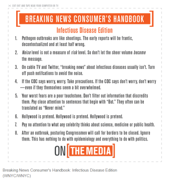 This chart gives a helpful summary of how not to freak out in the wake of Ebola’s arrival on American shores: