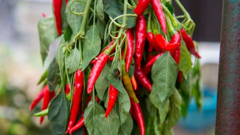 Villagers dry chili peppers under the sun at Baba Village on September 20, 2017 in Zhangye, Gansu Province of China. (Photo by VCG/Getty Images)