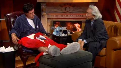 Colbert also asked Dr. Kaku about time travel, wondering (as Stephen Hawking has) why haven’t we met anyone from the future who has traveled to our time. Dr. Kaku suggested that future travelers might be among us, wearing Harry Potter-style invisibility cloaks.