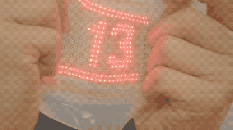 Embedded in Someya’s e-skin is a 24 by 16 array of micro-LEDs that display characters, digits, and animations. The e-skin is very sturdy, surviving 10,000 lab bend and stretch tests.