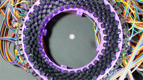 Fine control of the mini-vortices allowed them to stabilize the larger one, and they could then increase the size of the core to levitate larger objects, up to a two-centimeter polystyrene ball. That’s more than twice the size of the acoustic wavelengths they were using.