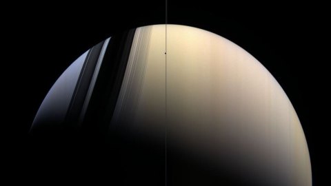 If a human hovered close to the giant ringed planet, she would see Saturn as partly blue. In March 2006, the robot Cassini spacecraft, still orbiting Saturn, snapped this image of the planet in gold and blue.