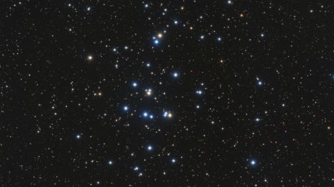 M44 is a cluster of young stars some 600 light-years away from Earth. Also known as the Praesepe or Beehive Cluster, its stars are around 600 million years old compared to our Sun’s 4.5 billion years and the closest cluster to our galaxy, according to NASA. Some of its yellowish-colored stars and red giants make it a popular treasure for binocular-equipped star gazers.