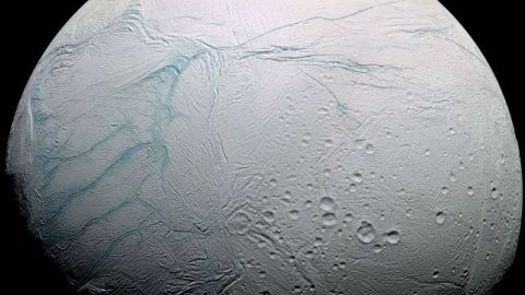 Underground oceans may be venting through these long “tiger stripes” on Saturn’s moon Enceladus. The moon’s icy interior shoots ice through the stripes and into space.