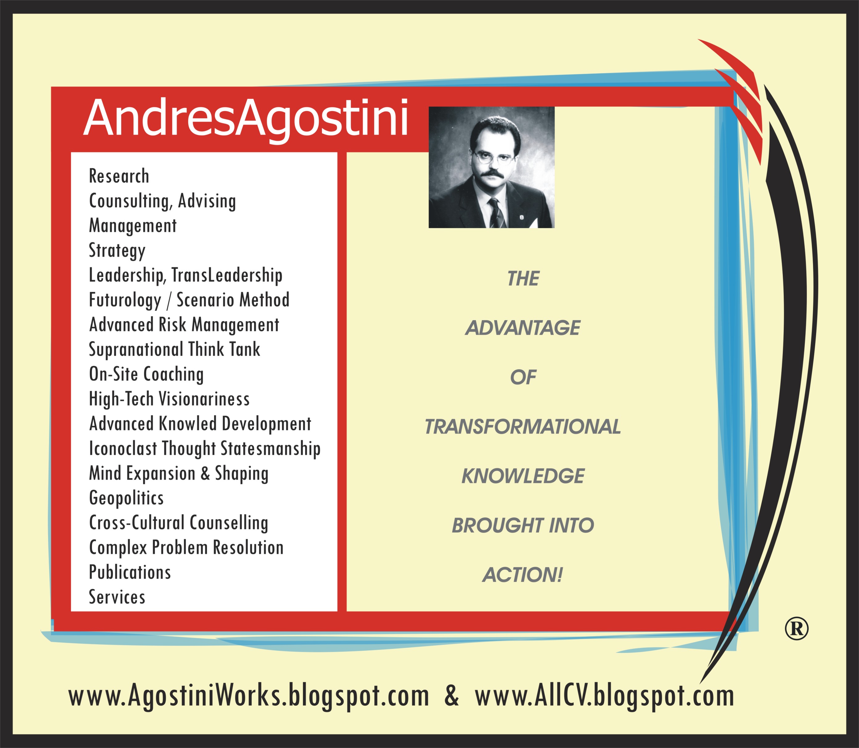 “Omniscience is the only salvation of Earth (a) if stringent and absolute morality and ethics are universally practiced by the totality of individuals, and (b) if, concurrently, the 700-billion inhabitants collaborate lavishly and fluidly with each other. I am still a realistic with a touch of optimism. Said optimism will come true and grow if people become honest, compassionate, and helpful to each others, as well as when solidarity among each other is practiced universally. My optimism would raise the highest bar if the greatest majority of the 700-billion would become ‘good Samaritans’ genuinely. ” – Andres Agostini “Andy” (Jan/24/2009), 4:23 p.m. – Arlington, Virginia, USA at www.AgostiniWorks.blogspot.com