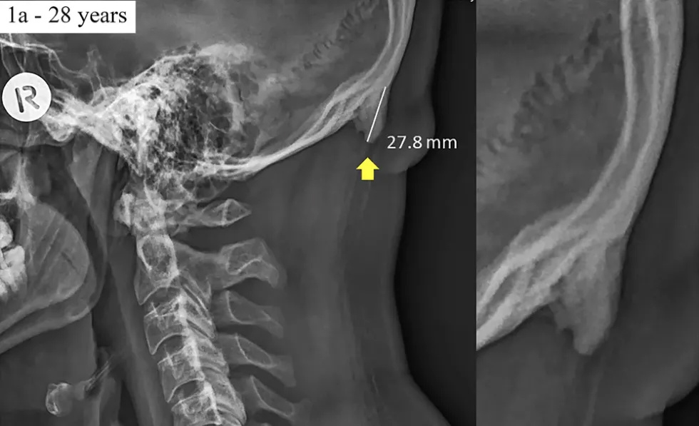 Three academic papers from Australia shows sizable bone spurs growing at the base of our skulls.