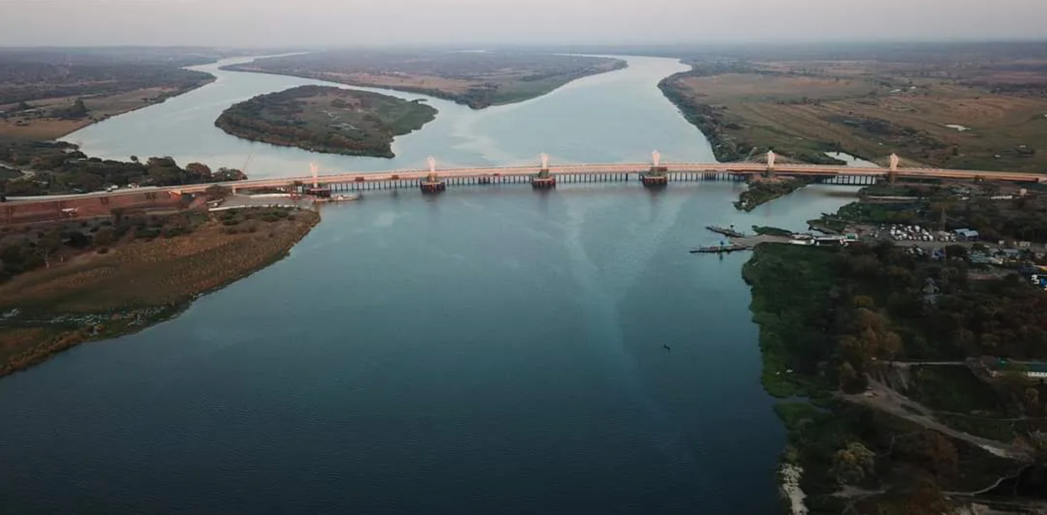 The Kazungula Bridge connects Zambia and Botswana, barely missing Namibia and Zimbabwe.