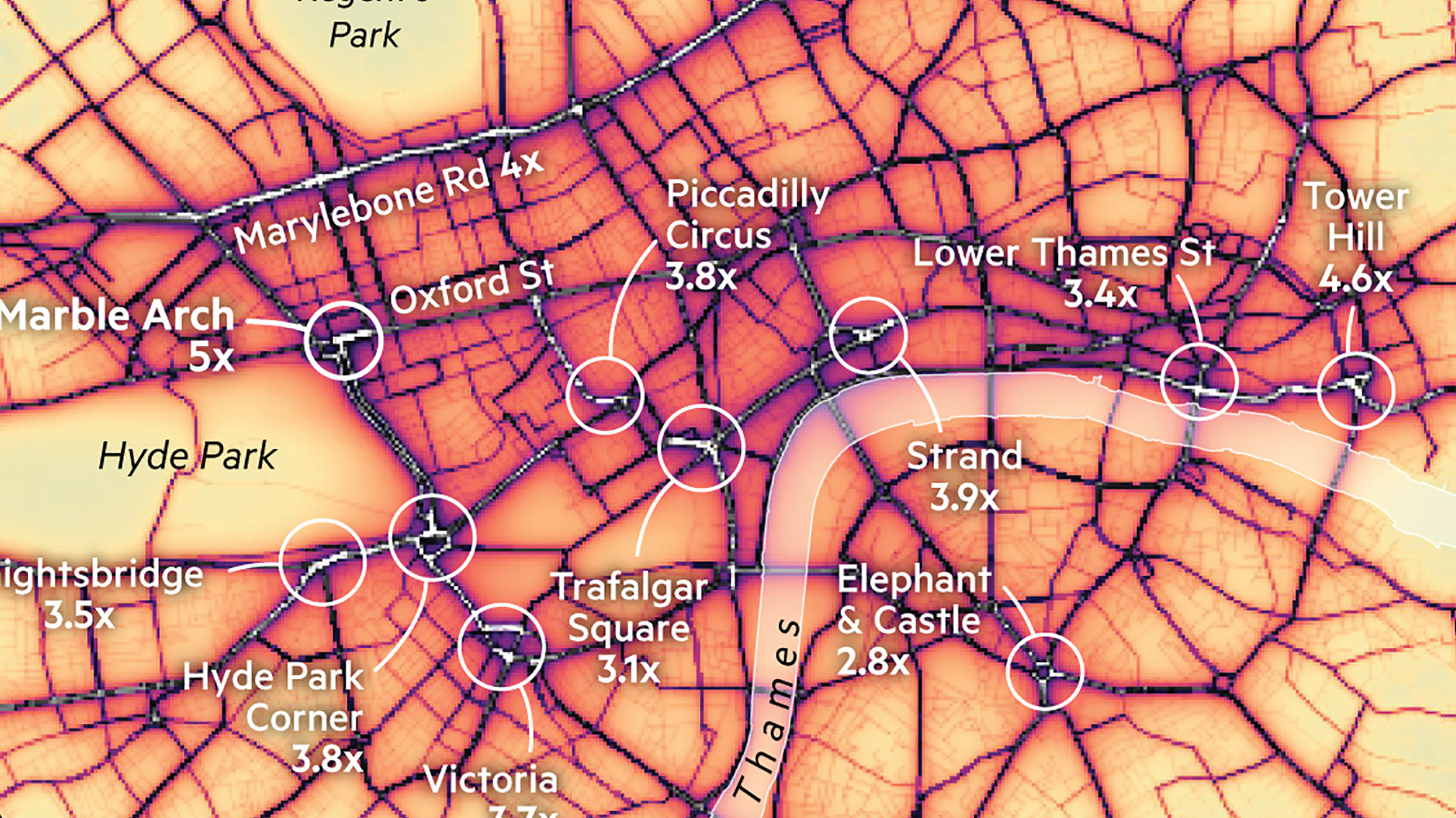Air pollution is up to five times over the EU limit in these Central London hotspots.