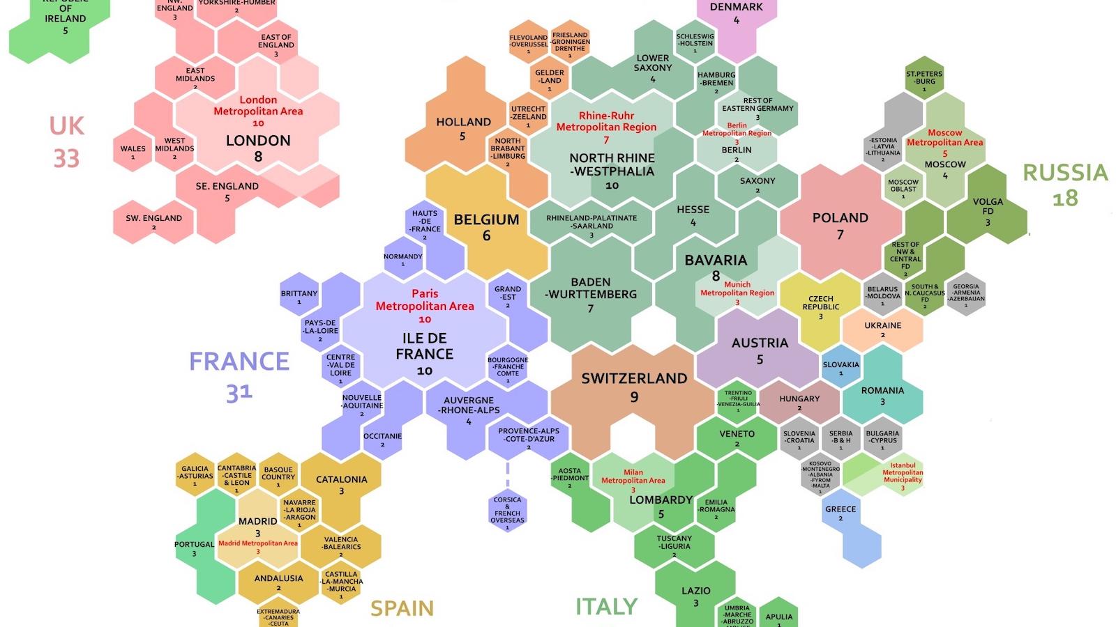 A cartogram makes it easy to compare regional and national GDPs at a glance.