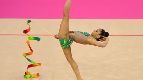Portugal's Laura Sales performs with ribbon during the 33rd Rhythmic Gymnastics European championships in Budapest, Hungary on May 19, 2017. (Attila Kisbenedek/AFP Photo)