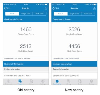 The whispers have been around for a while: As soon as you buy a new iPhone, your older one seems to be going much slower. While at least one benchmarking firm — benchmarking is a way of evaluating computer performance as objectively as possible — has concluded the effect is largely psychological, others say, nope, the processor struggle is real. When a Reddit user had his iPhone 6s battery replaced, he saw a big performance jump, and the developer of Geekbench a little while later responded that older phones are being slowed down, starting with the iOS 10.2.1 operating system update, when Apple announced it was implementing a fix for sudden shutdowns.