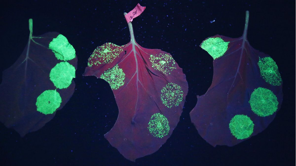 The researchers used silica nanoparticles about 10 nanometers in diameter to carry luciferase, and they used slightly larger particles of the polymers PLGA and chitosan to carry luciferin and coenzyme A, respectively. To get the particles into plant leaves, the researchers first suspended the particles in a solution. Plants were immersed in the solution and then exposed to high pressure, allowing the particles to enter the leaves through tiny pores called stomata.
