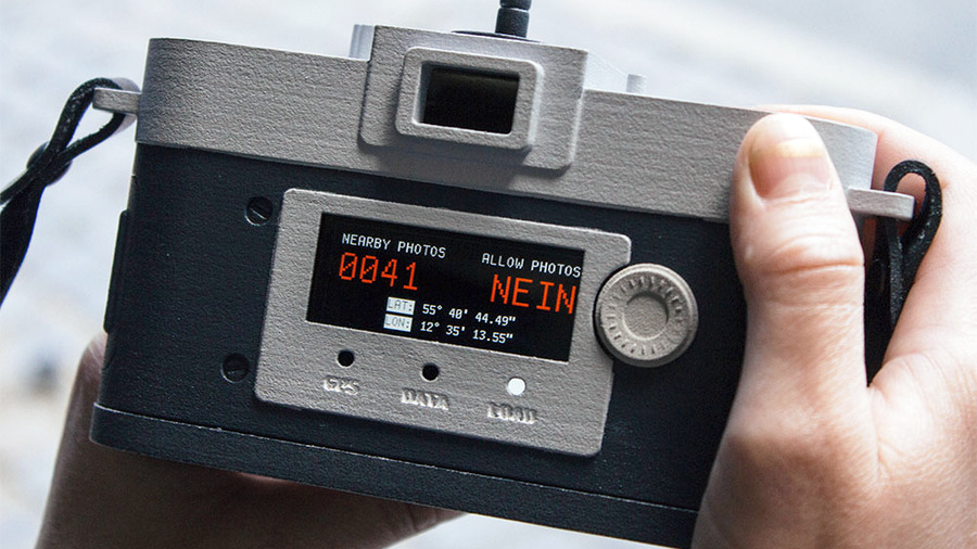 It works by taking your location and scanning the web for other photos that have been geotagged with the same location. All the while the camera emits a clicking noise, like a Geiger counter. If a place is too “hot,” the Camera Restricta will retract its lens and blocks the viewfinder, and you won’t be able to take a photo.