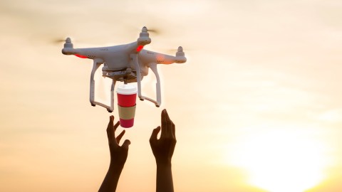 Suddenly, a drone drops from the sky, offering a strong cuppa joe … just for you. You happily take it from the air, your card is charged, and you’re now much more jovial as your day proceeds.