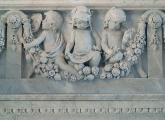 2006. Great Hall in Thomas Jefferson building, Washington, D.C. Detail of cherubs representing the literary genres on the Grand staircase by Philip Martiny.