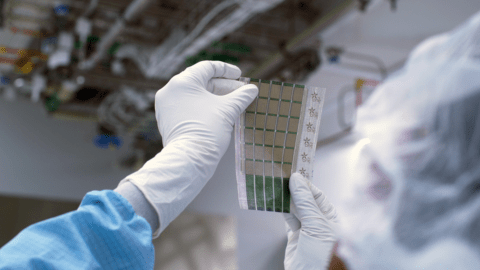 To produce the solar cells, they use nanomaterials that are in the form of a printable electronic inks. Working in the MIT.nano clean room, they coat the solar cell structure using a slot-die coater, which deposits layers of the electronic materials onto a prepared, releasable substrate that is only 3 microns thick. Using screen printing (a technique similar to how designs are added to silkscreened T-shirts), an electrode is deposited on the structure to complete the solar module.