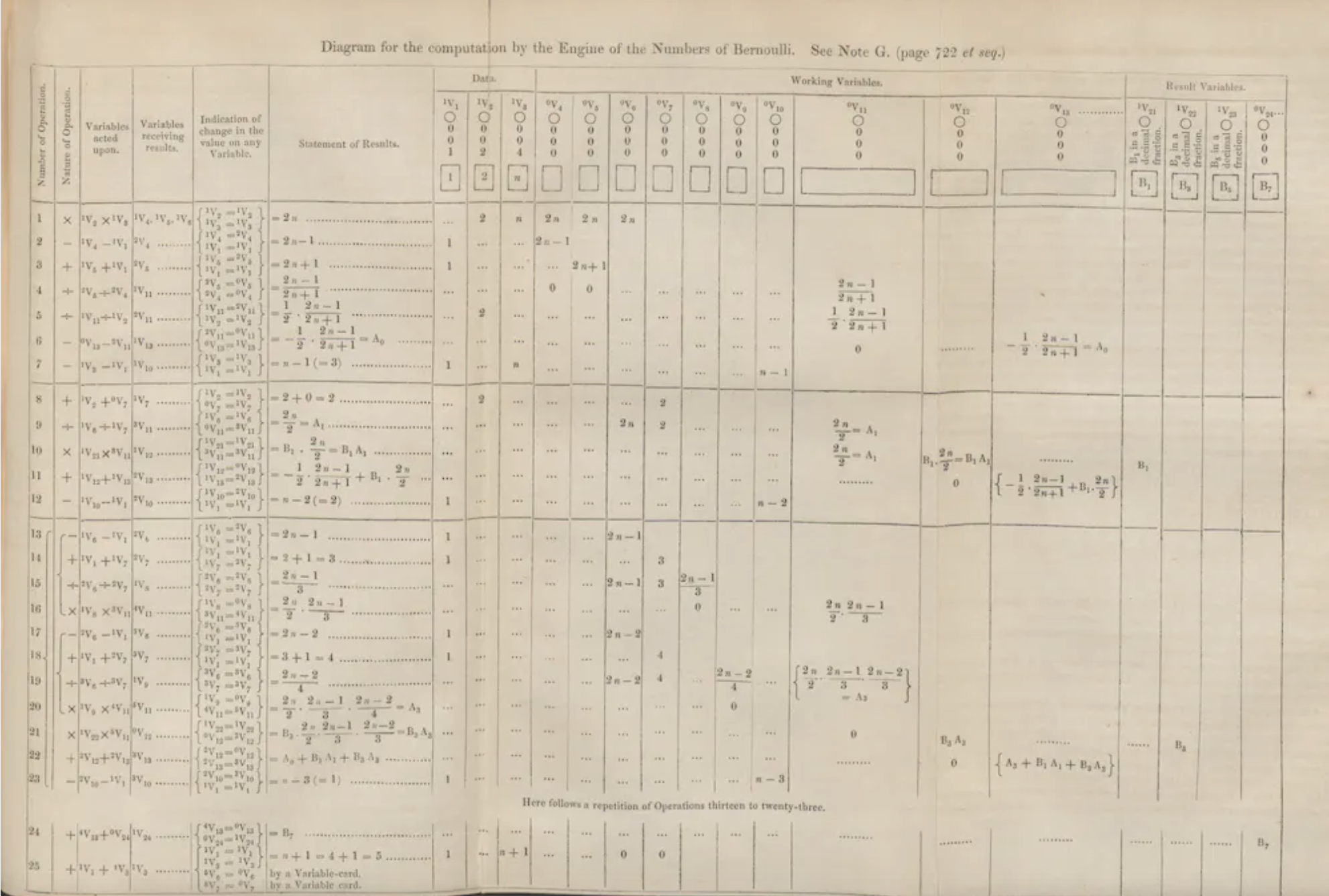 The notes included instructions on how to calculate Bernoulli numbers, which Lovelace knew from her training to be important in the study of mathematics. Her program showed that the Analytical Engine was capable of performing original calculations that had not yet been performed manually. At the same time, Lovelace noted that the machine could only follow instructions and not “originate anything.”