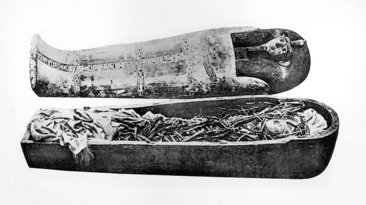 While researchers were hesitant to look at the mummy itself, they wasted no time examining his immediate surroundings. Amenhotep lay inside a sarcophagus that was decorated with hieroglyphic inscriptions or dockets that mentioned not only his name but also the fact that this coffin, despite looking considerably ancient, was not the pharaoh’s original.