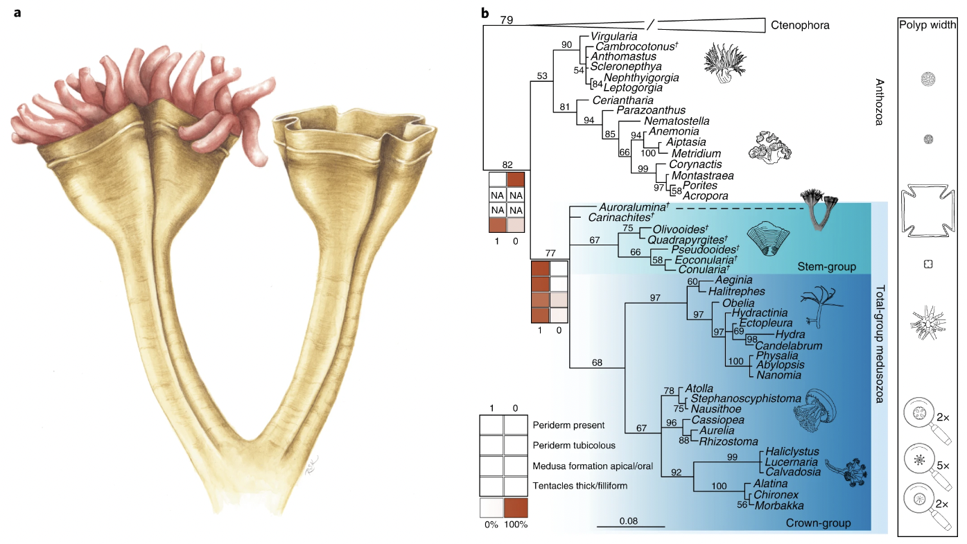 A. attenboroughii’s anatomy is distinct from all other known Ediacaran fossils. In fact, it shares a combination of characteristics with early Cambrian forms of confirmed cnidarians. If the researchers had to make an assessment based only on the specimen’s physical features, without considering the age of the fossil, they would have placed A. attenboroughii well within the group of Cambrian cnidarians.