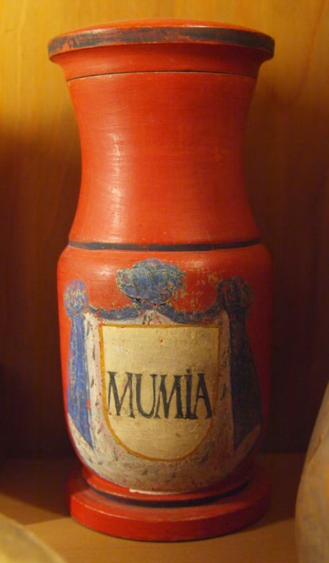 Mumia, the product created from mummified bodies, was a medicinal substance consumed for centuries by rich and poor, available in apothecaries’ shops, and created from the remains of mummies brought from Egyptian tombs back to Europe.