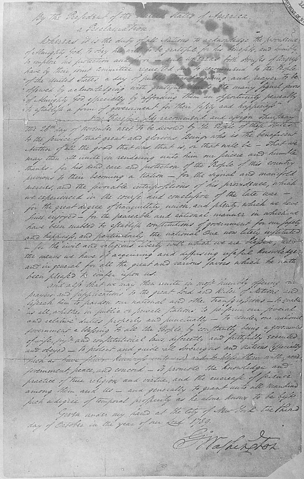 But Washington’s main concern was political. The nation was recently formed, and he feared that it could easily collapse. Its many internal divisions and separate interests could be lethal. Consequently, the president wanted this holiday to be a civic celebration in which “we may then all unite.”