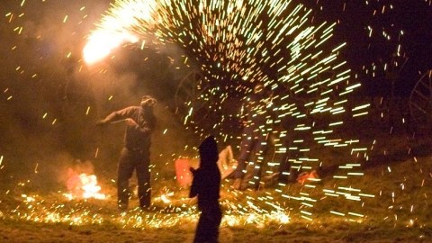 A fire-cage swinging, Imbolc 2007, Marsden, England. Image source: Steven Earnshaw on Flickr