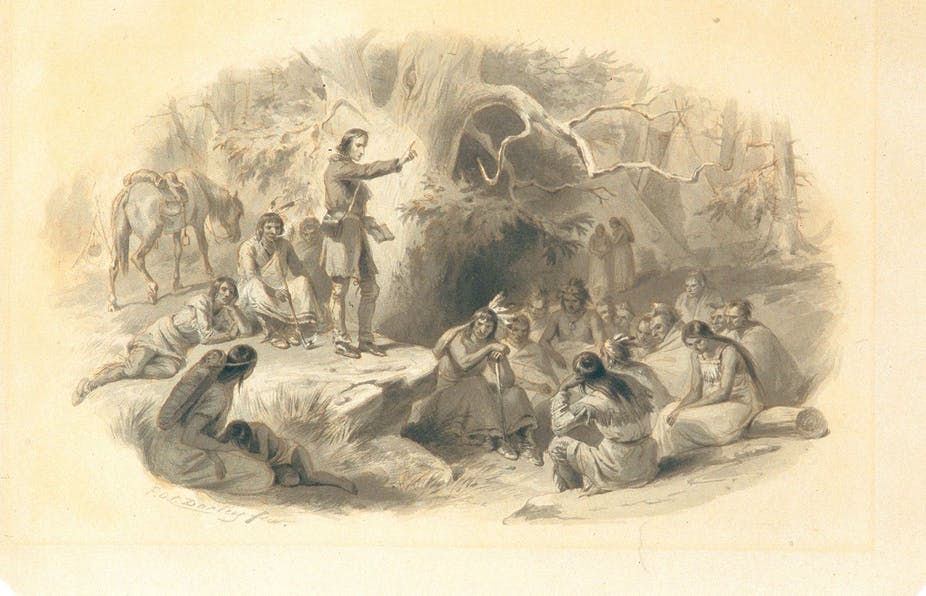 Many colonists described New England as an “Eden”. But in 1632 the early colonist Thomas Morton said the epidemic of 1616-19 had rendered it “a new found Golgotha” – the skull-shaped hill in Jerusalem described in the Bible as the place of Christ’s death. Most pilgrims and puritans viewed plague as a confirmation of divine favour toward the English, in part because few of the colonists died in comparison to the Algonquians of New England. Colonists often referred to Indigenous peoples’ bodies as more healthy and fit than European ones, and this sense of physical disparity made the subsequent decline of Algonquians seem all the more striking.