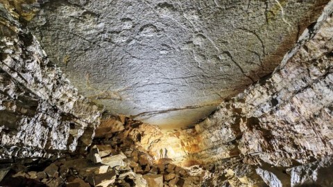 Dinosaur tracks in the ceiling of Castelbouc Cave in France.
