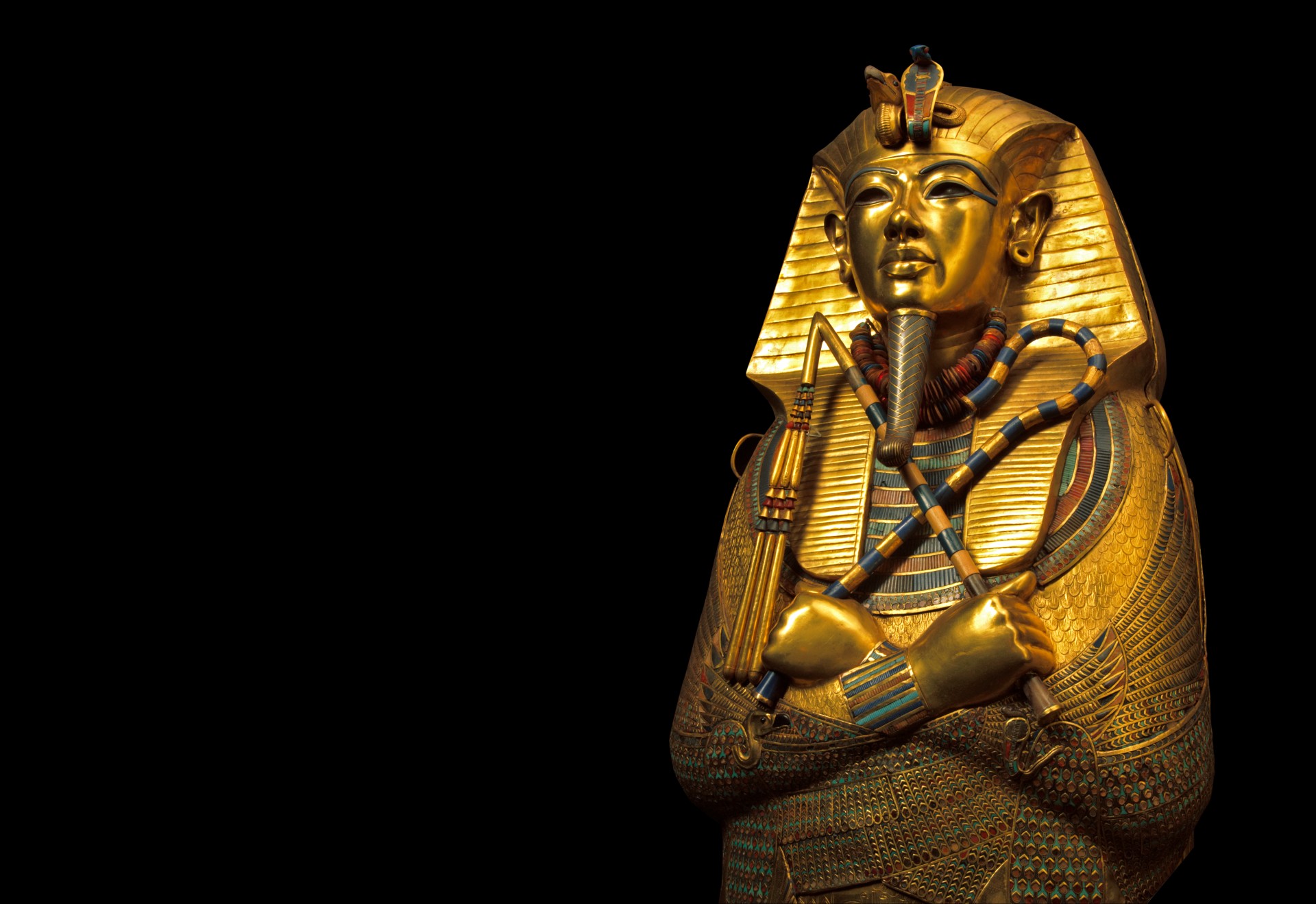 The teenage King Tutankhamun was laid to rest in about 1322 B.C. with unimaginable wealth. His mummified remains were interred in this solid gold coffin weighing more than 243 pounds (110 kg). Inlaid semiprecious stones and glass add details.