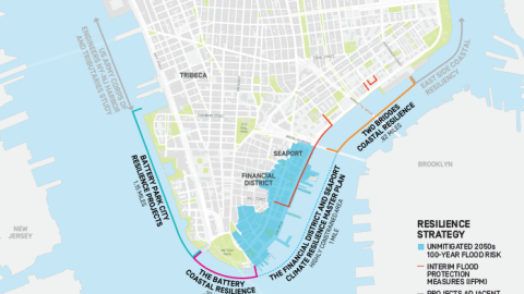 New York City Mayor Bill de Blasio has a bold and expensive plan to protect lower Manhattan from sea level rise and the next major storm: Expand the coastline by two city blocks into the East River. The plan, estimated to cost $10 billion, would create new land between piers from the Brooklyn Bridge to the Battery, and would install “grassy berms in parks and removable barriers that can be anchored in place as storms approach,” the mayor said.