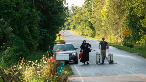 A cab drops off a couple of asylum seekers at the US/Canada border near Champlain, New York, August 20, 2017. AFP PHOTO / Geoff Robins /Getty Images