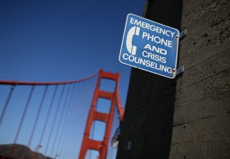 SAN FRANCISCO – OCTOBER 10: A sign for an emergency phone is seen on the span of the Golden Gate Bridge October 10, 2008 in San Francisco, California. (Photo by Justin Sullivan/Getty Images)