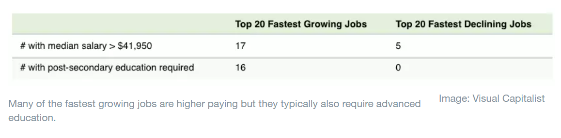 However, while many of the fastest growing jobs are higher paying, they typically also require advanced education.