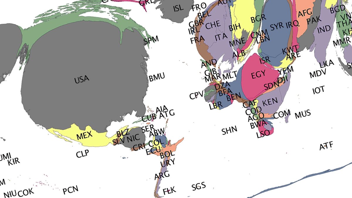 In 2014, Haewoon Kwak and Jisun An at the Qatar Computing Research Institute in Qatar analyzed thousands of real-world events and news articles, and then created a map of the world that shows each country distorted in size by how much coverage it receives in a given region. The bigger the country appears on the map, the more news coverage it receives.
