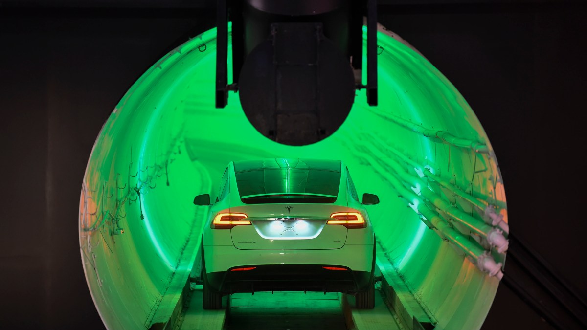 The initial concept for The Loop — not to be confused with the company’s Hyperloop, which is a separate and not-yet-constructed project — was a system in which 16-passenger pods would descend from street level into the tunnel and glide along electric skates at speeds reaching 150 mph.