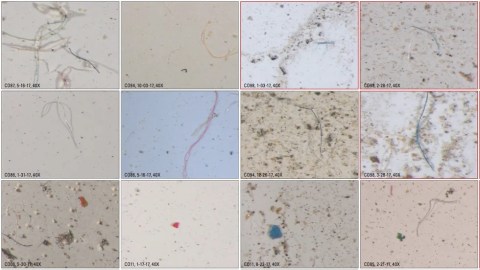 “The plastic materials are mostly fibers that are only visible with magnification (~40X),” they wrote in the report. “Fibers were present in a variety of colors; the most frequently observed color was blue followed by red > silver > purple > green > yellow > other colors. Plastic particles such as beads and shards were also observed with magnification.”