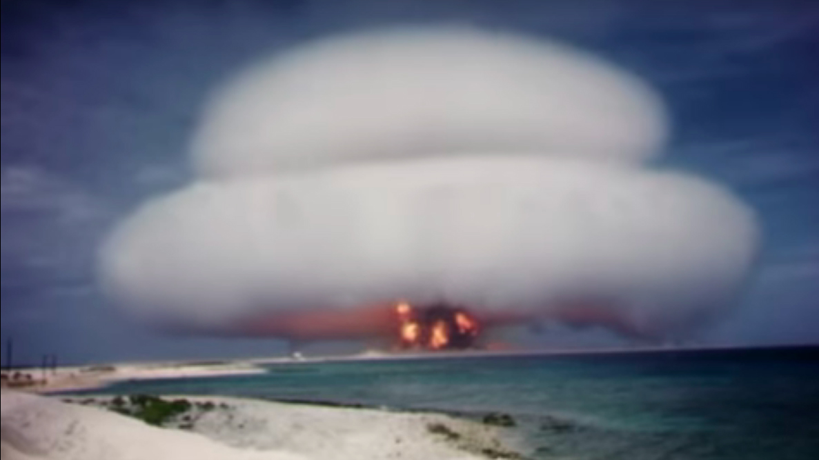Almost all nuclear weapons tested have either been detonated within the atmosphere (ground or air, sometimes on the verge of space), in which case the first sign of the explosion has involved a blinding flash obscuring everything, or underground, in which there was often much less to see, except eerie videos of the earth slowly giving way to form a crater before kicking up dust. Underground testing could, of course, still lead to dramatic (and disturbing) footage, such as the ground rising up before exploding, a particularly notable example being the Operation Storax Sedan detonation in 1962, which was testing (almost unbelievably) ways of using nuclear weapons for civil construction in large excavation projects.