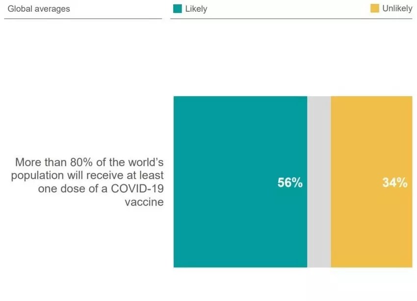 COVID-19 is not an obvious cause for optimism, but the progress of vaccination programmes is giving people hope that things will improve. More than half of those questioned believed that over 80% of the world’s population would receive at least one dose of a vaccine in 2022.
