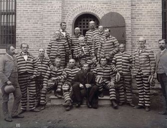 Portrait of Mormonpolygamists in prison, at the Utah Penitentiary, circa 1889.
