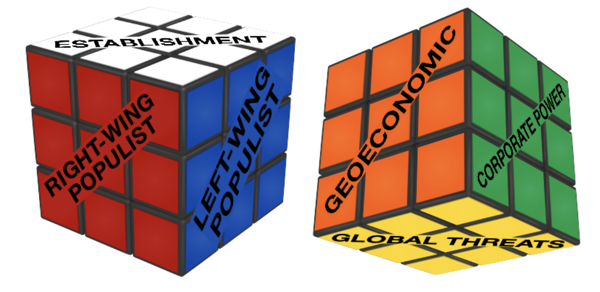 Could we unscramble this Rubik’s cube? we wondered. Was there a way to arrange the different-colored pieces of the puzzle into coherent narratives, and to fashion a framework to show how these narratives relate to each other? Could this help us to better understand the political moment we found ourselves in and provide us with tools to analyze potential paths forward? As we disentangled the debates that had been playing out in the Western media, six prominent narratives about the winners and losers from economic globalization emerged, which we conceptualize as existing on the six faces of the Rubik’s cube.