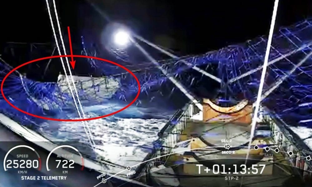 A rocket’s fairing is a structure that protects the payload during launch. Once in space, Falcon Heavy’s fairing breaks into halves, which then slowly descend back to Earth using special parachutes. The goal is to guide these halves to the net-outfitted boats, because otherwise the fairings would land in the ocean where saltwater wreaks expensive damage on the hardware.