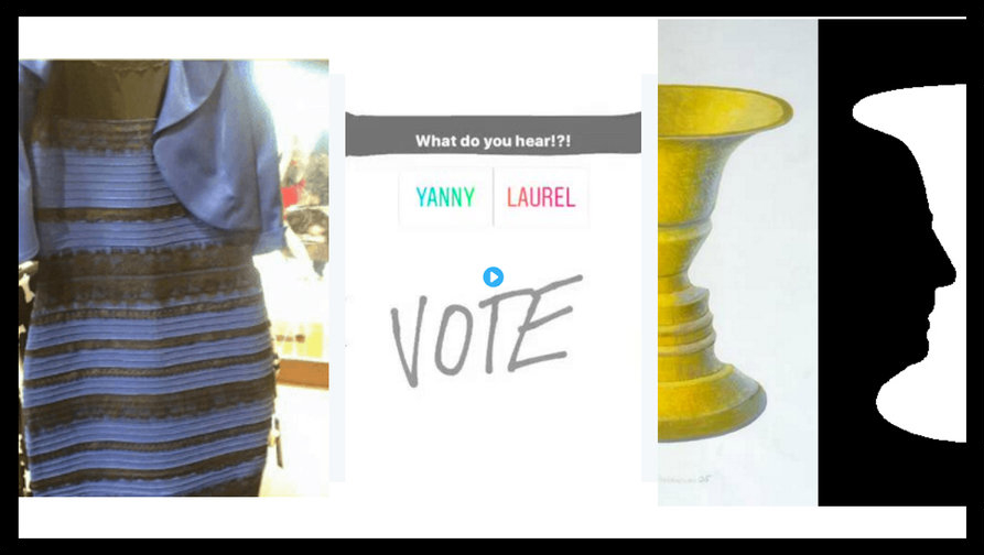 - The mere suggestion of “Which sound do you hear?” with the two words also influences what our brains interpret. If there were no suggestions of what either sound is, it’d be much harder to be convinced of what you are actually hearing.