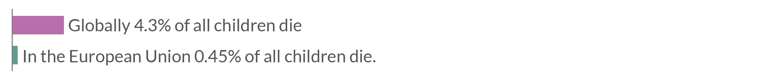 Globally 4.3% of children die before they are 15 years old. This is the data for 2020, the latest available year.