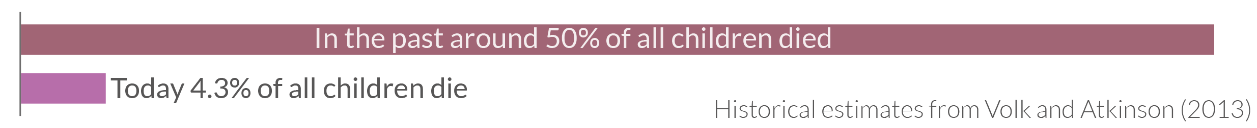 Data can help to bring the scale change to mind. Historians estimate that in the past around half of all children died before they reached the end of puberty. This was true no matter where in the world a child was born and it only started to change in the 19th century, just a few generations ago.3