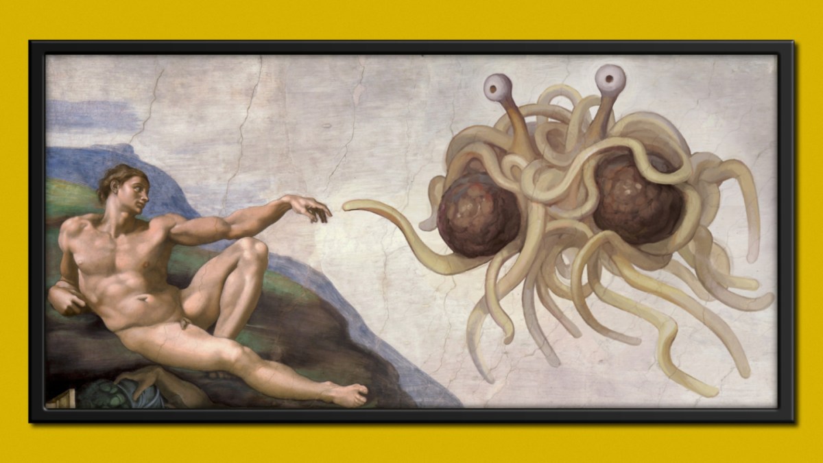 There’ve been quite a few such parodies: J.R. “Bob” Dobbs’ Church of the SubGenius, The First Church of the Gooey Death and Discount House of Worship, and the Church of the Flying Spaghetti Monster (or FSM), whose members are referred to as “Pastafarians.” Now, the Constitutional Court in Germany has ruled that the Church of the FSM is not a real religion.